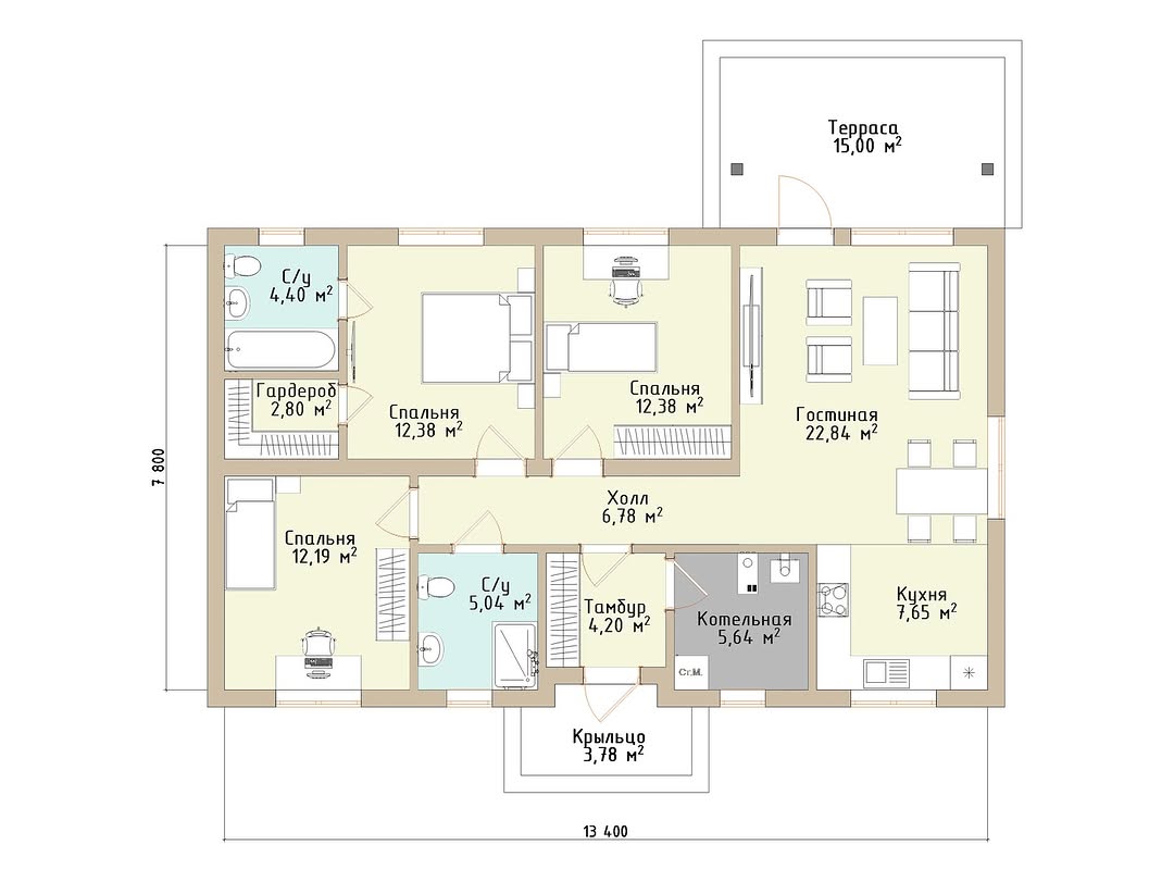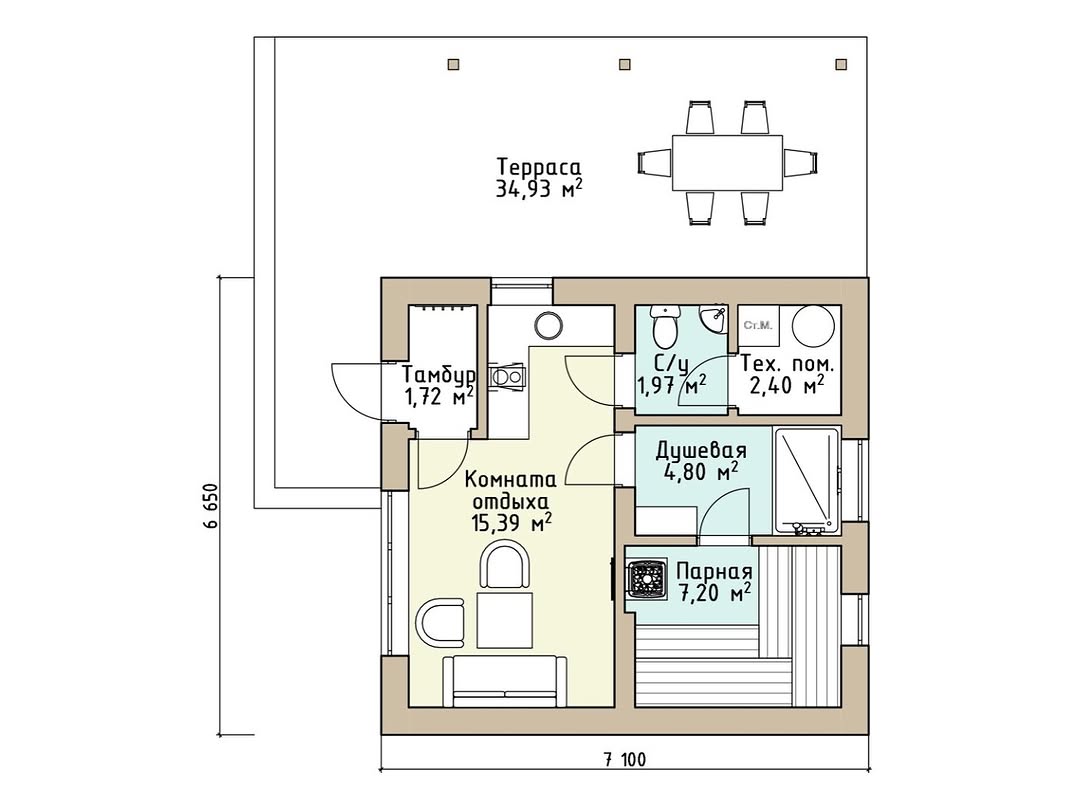 - кухня-гостиная с панорамным остеклением и возможностью выхода на террасу