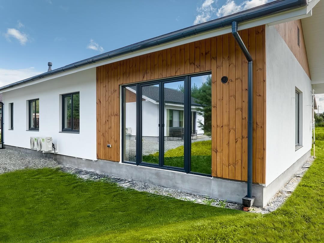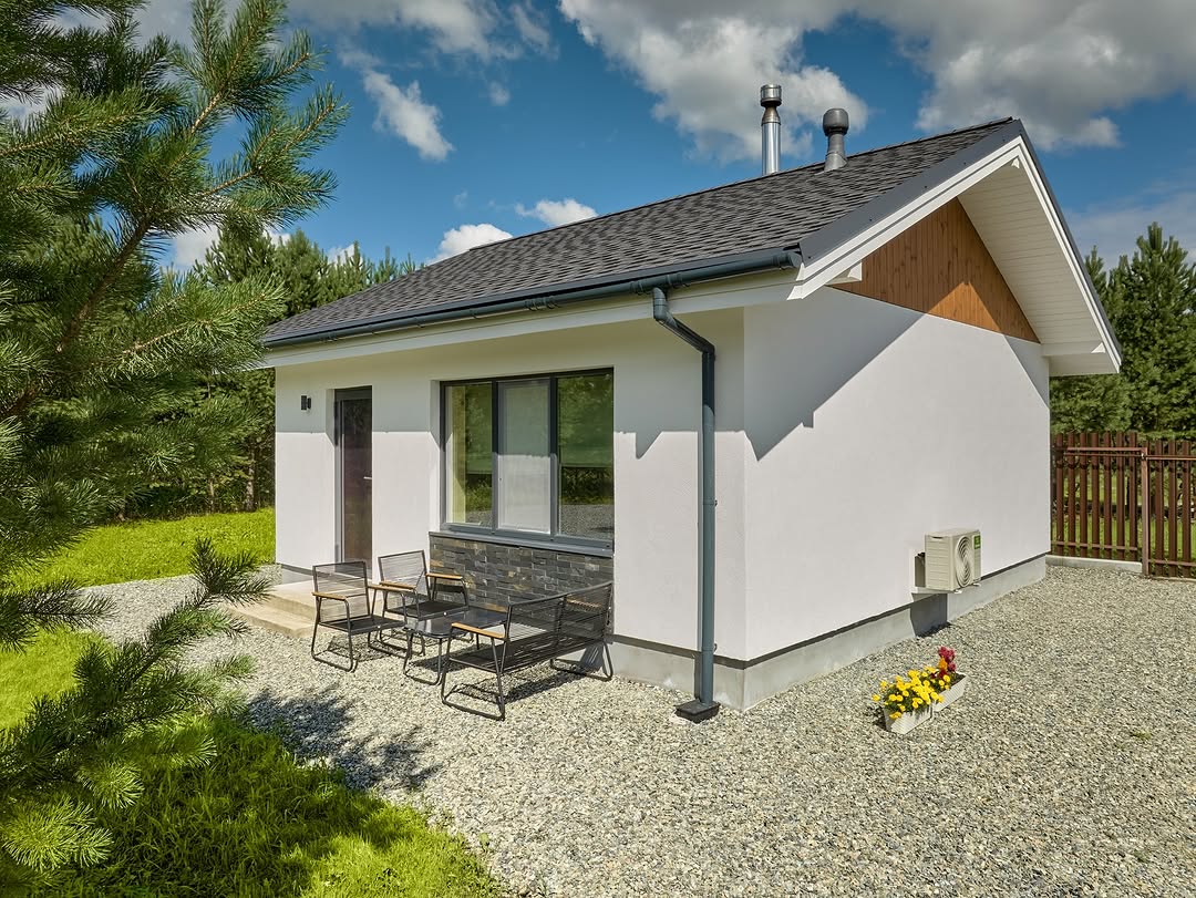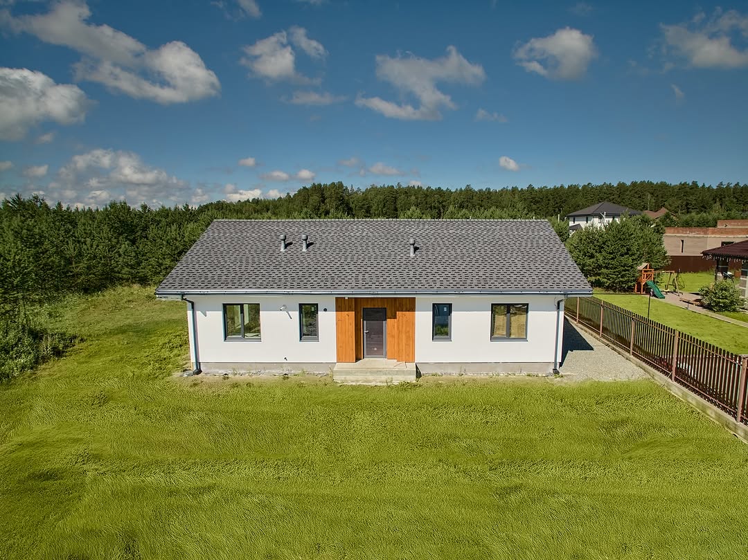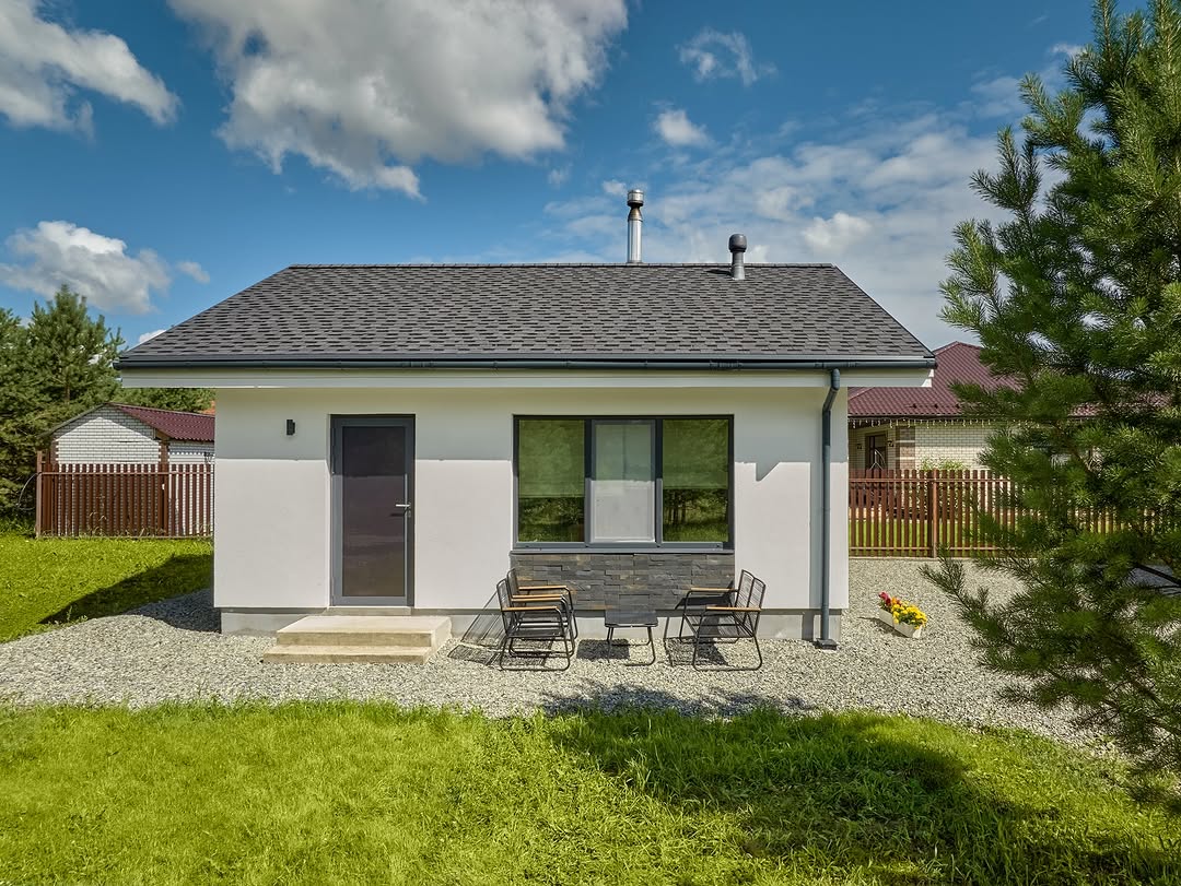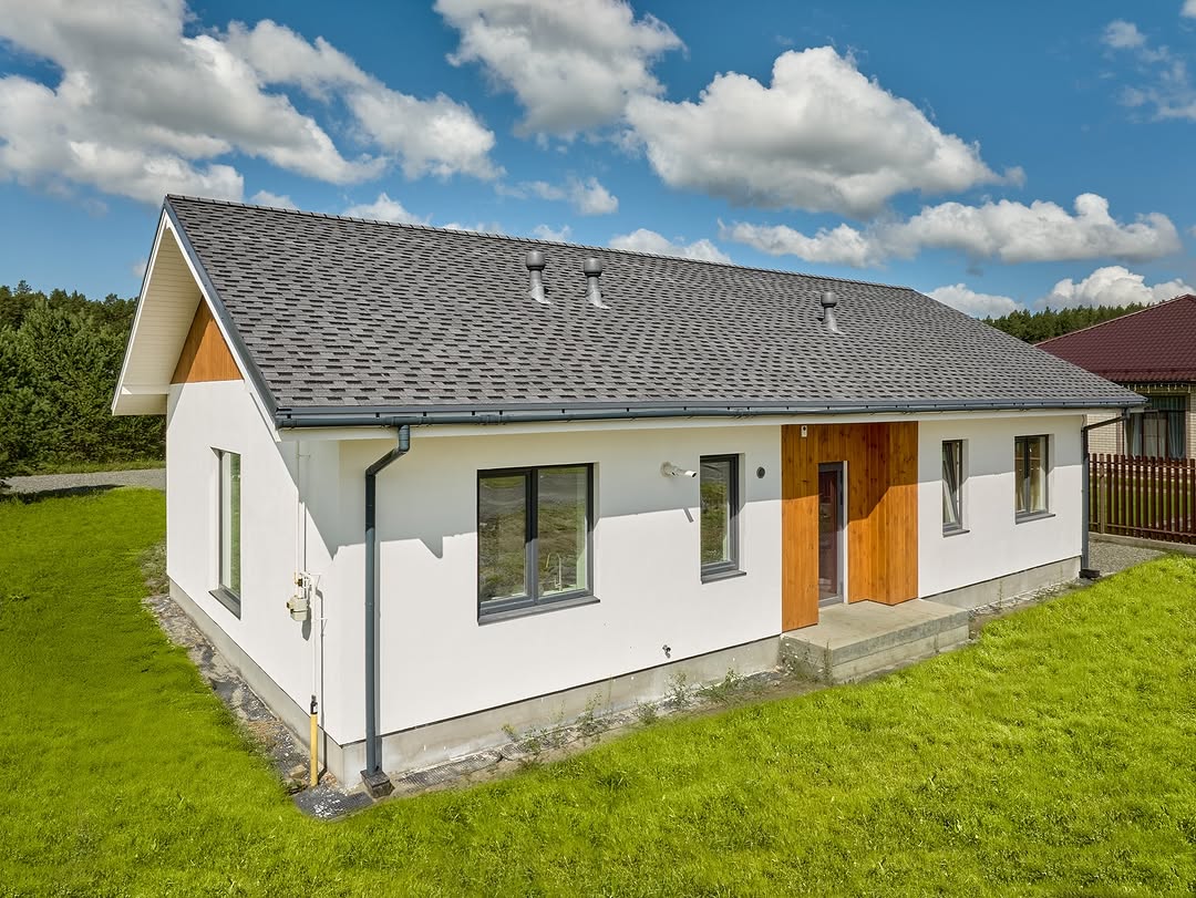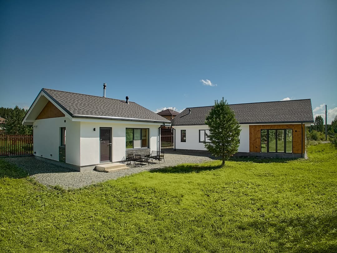 Дом по проекту Хвойный 96м2 и баня 34м2 в КП Клевер: пример комплексного строительства на участке для создания единого архитектурного стиля.