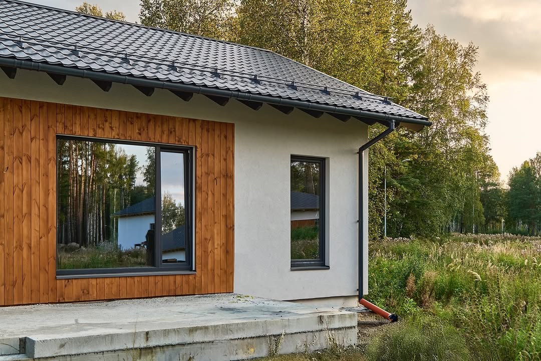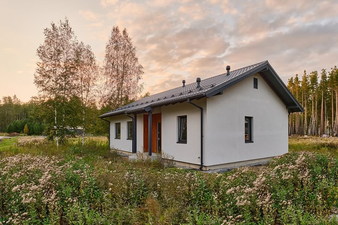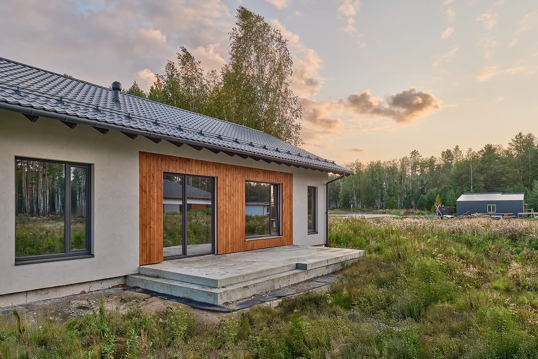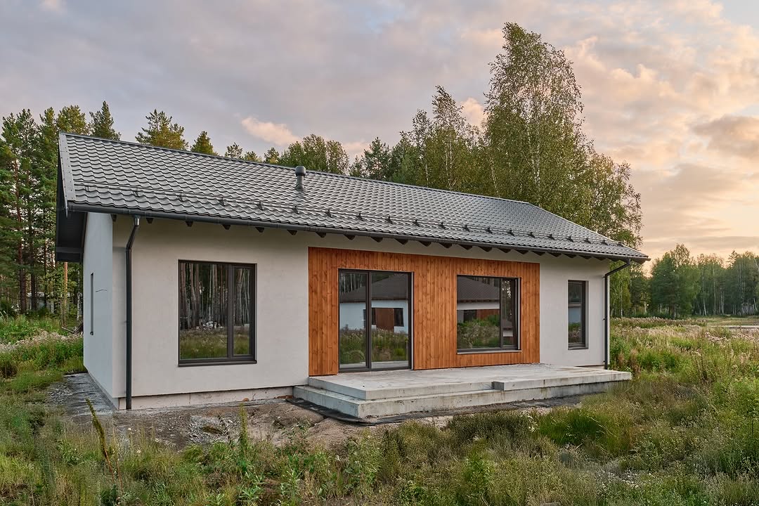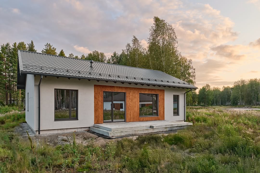 Одноэтажный дом по индивидуальному проекту в КП Заповедник, парк Малахит, год строительства - 2024.