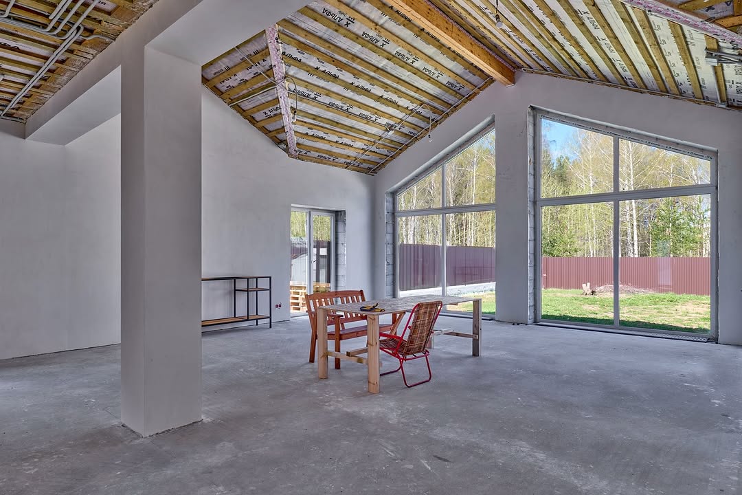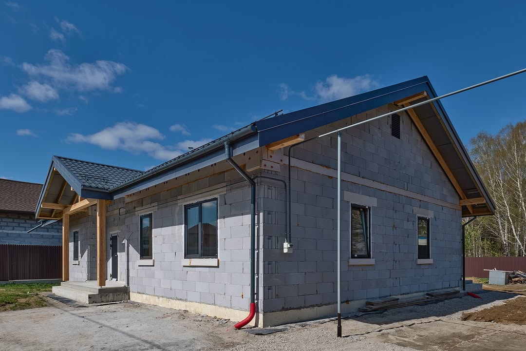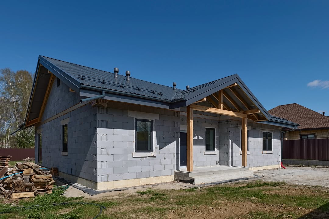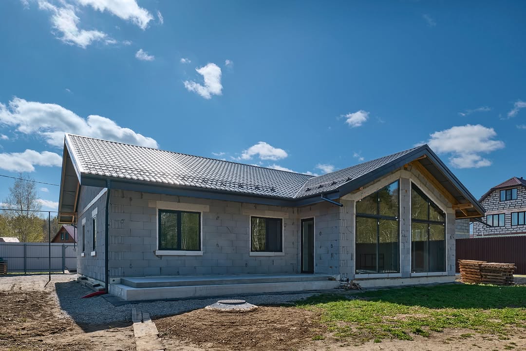 Монтируем кровлю двухэтажного дома 178м² с гаражом по проекту Резиденция в Первоуральском ГО, с. Новоалексеевское: спешим положить ОСБ и успеть закрыть его подкладочным ковром до наступления дождливой погоды.