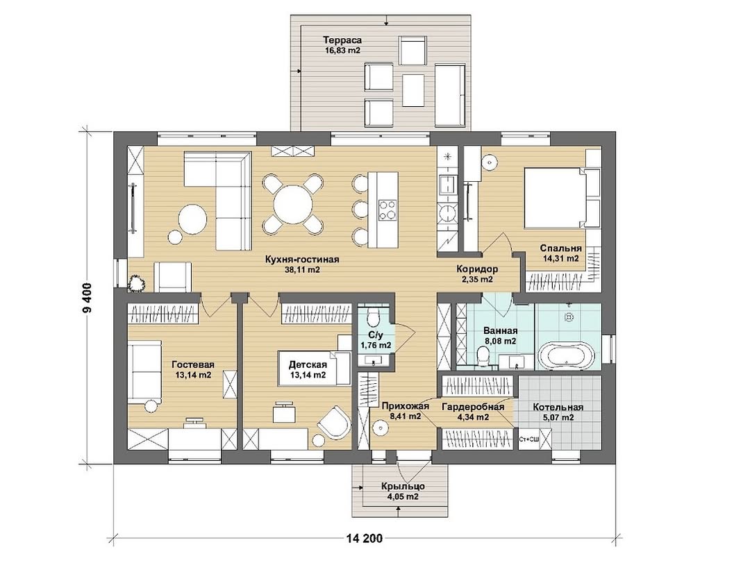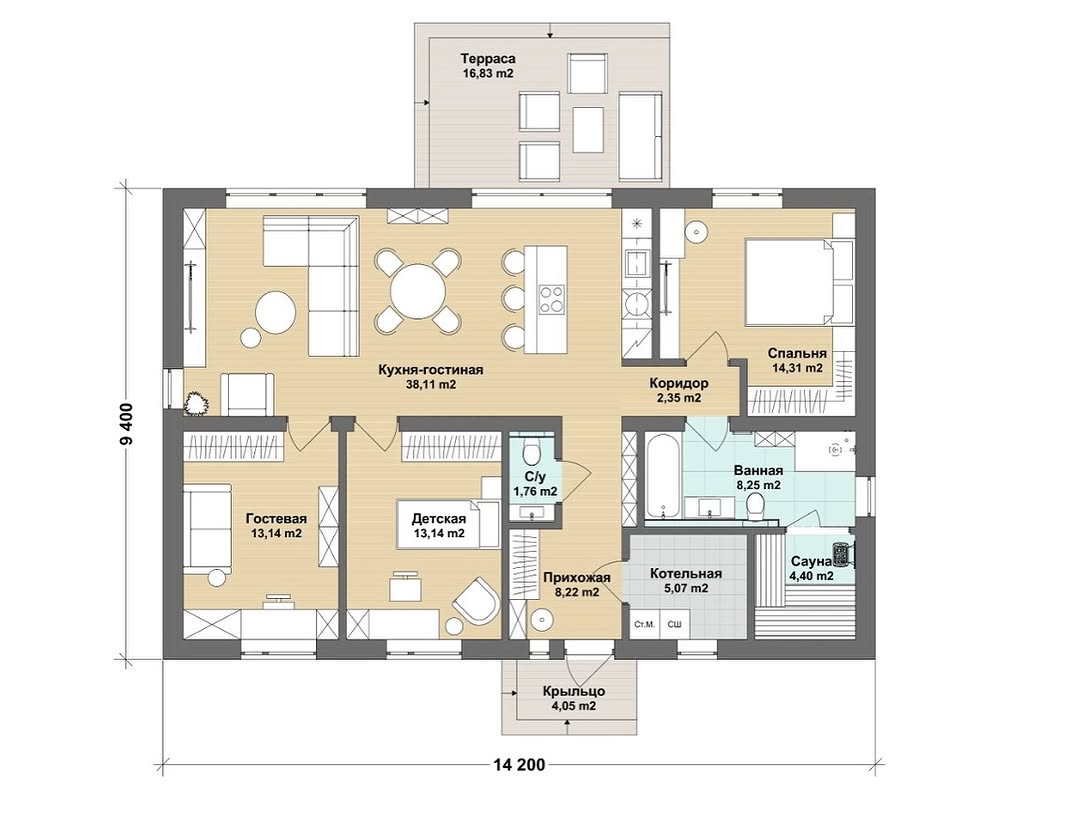 Проект одноэтажного дома Хвойный: 105м² комфорта.