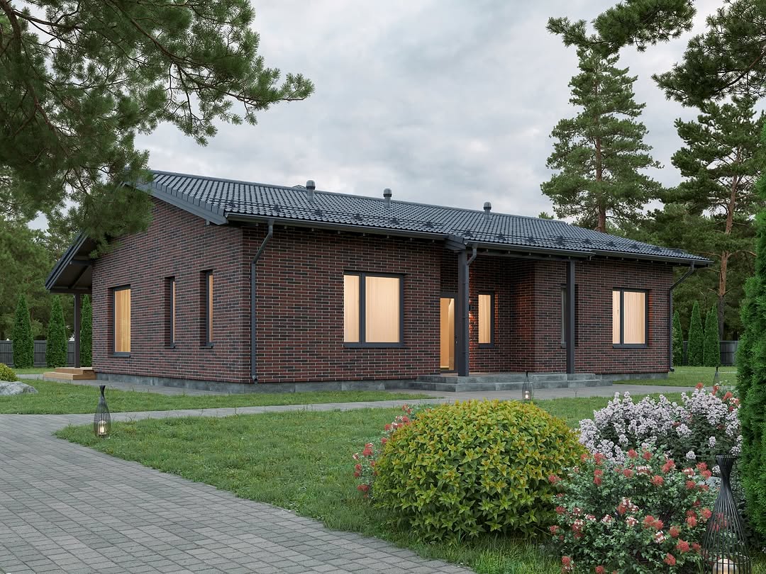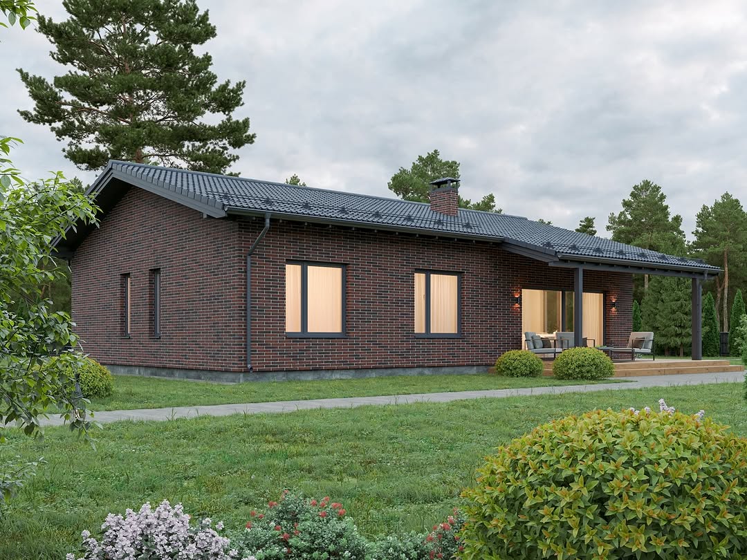 Проект одноэтажного дома Классик 118м²: продуманный, современный, с оптимальным метражом для семьи из 3-4 человек.