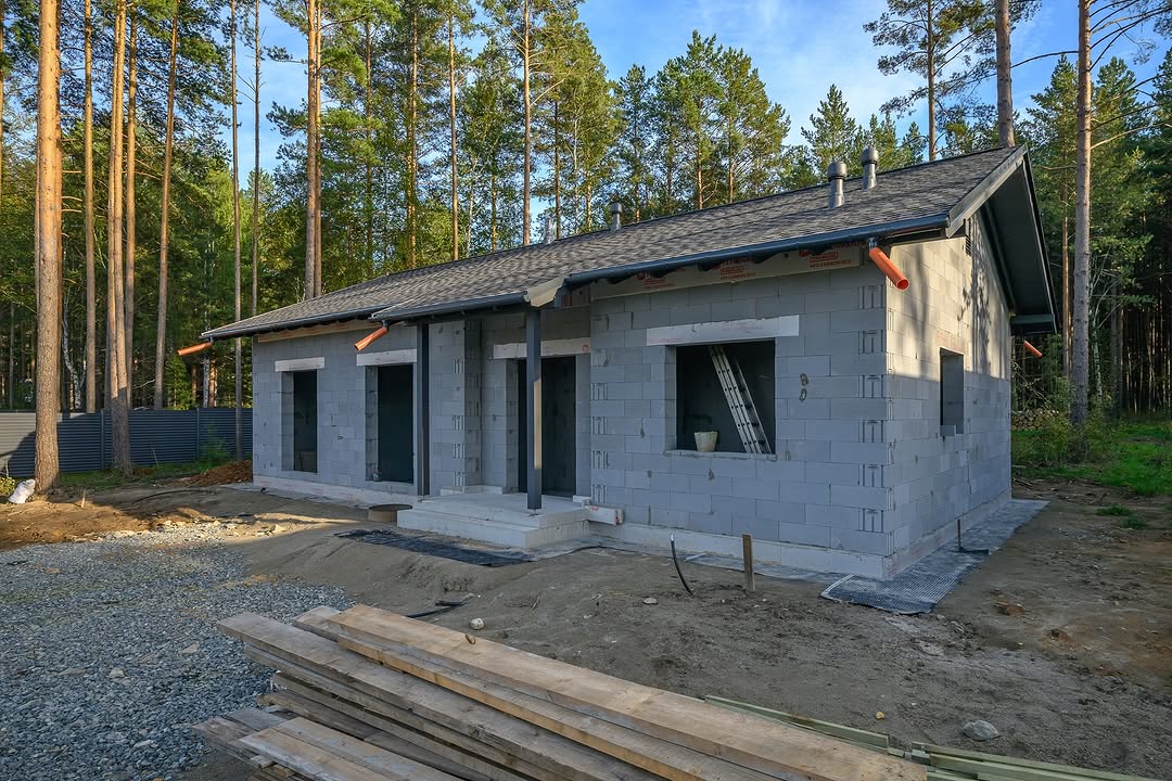 По желанию заказчиков подняли стены на ряд блоков и увеличили оконные проемы