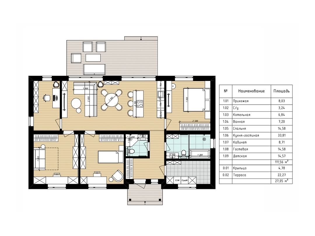 - Терраса - 22,1м²