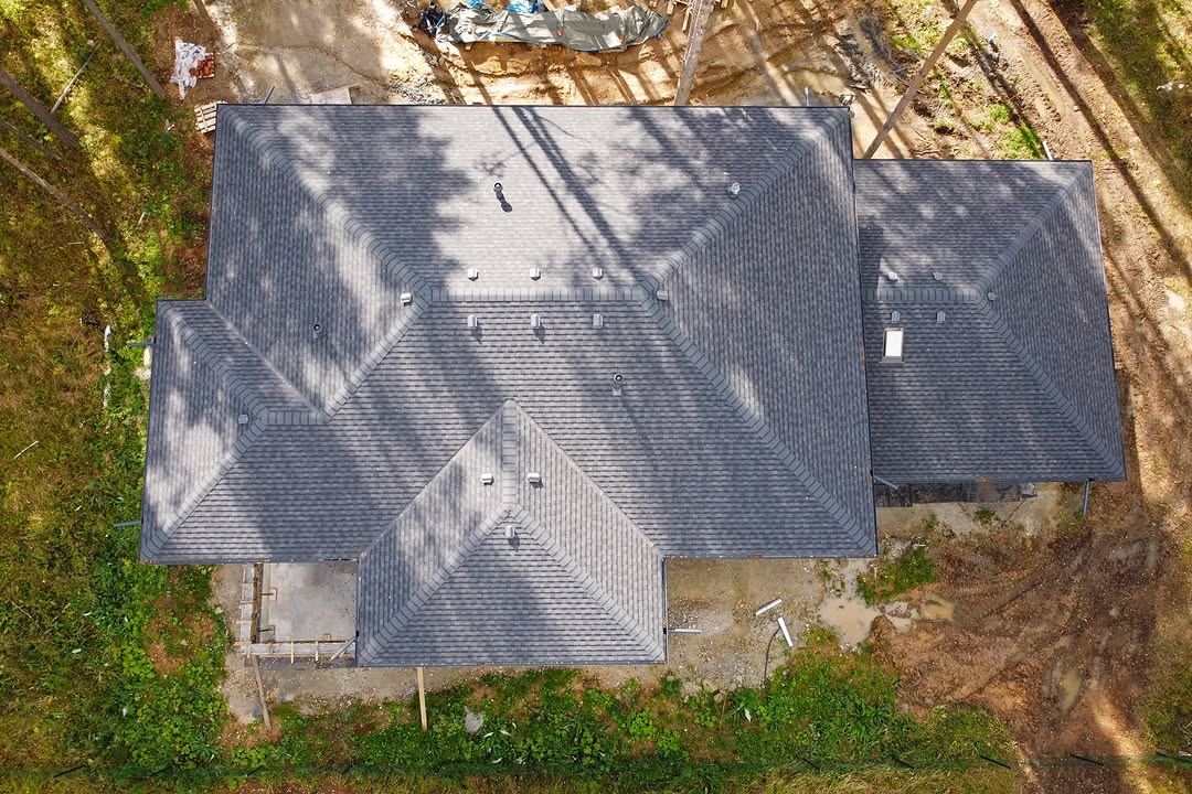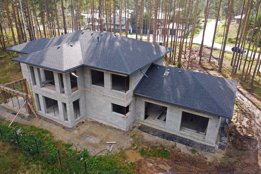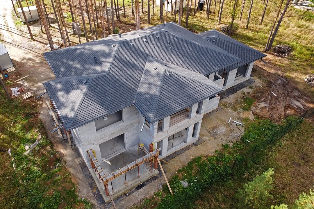Закончили монтаж кровли двухэтажного дома 366м² с бассейном и вторым светом по индивидуальному проекту.