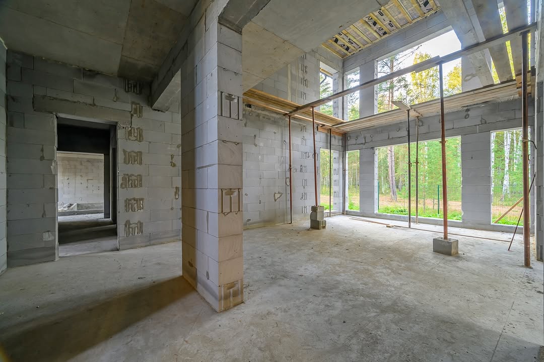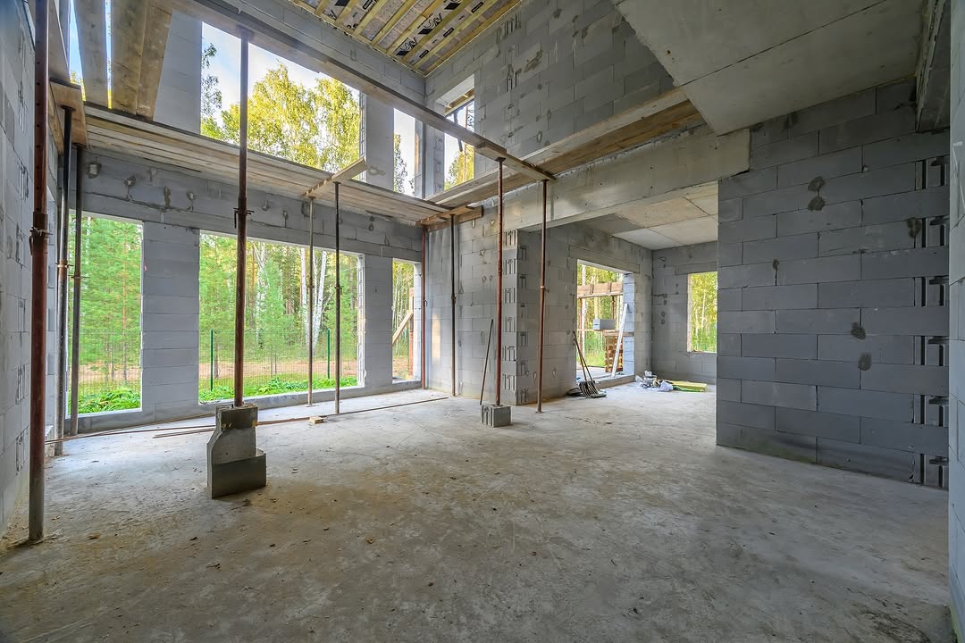 На сегодняшний день приступили к строительству террасы 21,3м² и входной группы 10,8м² сложили колонны, залили монолитные балки, позднее сделаем остекление и кровлю над ними.
