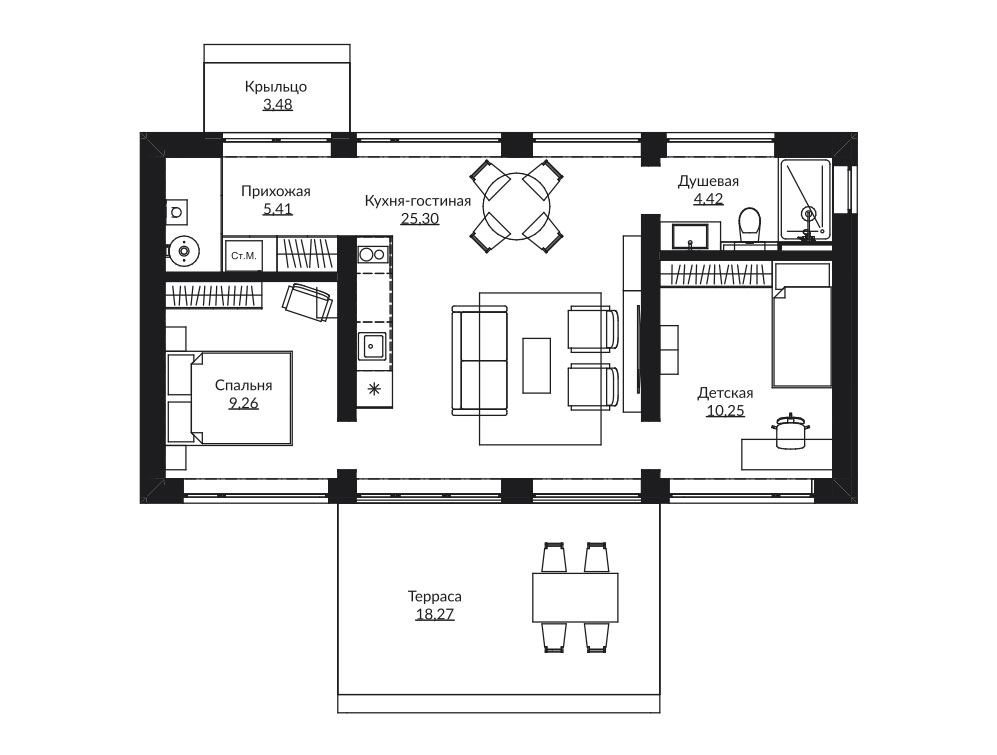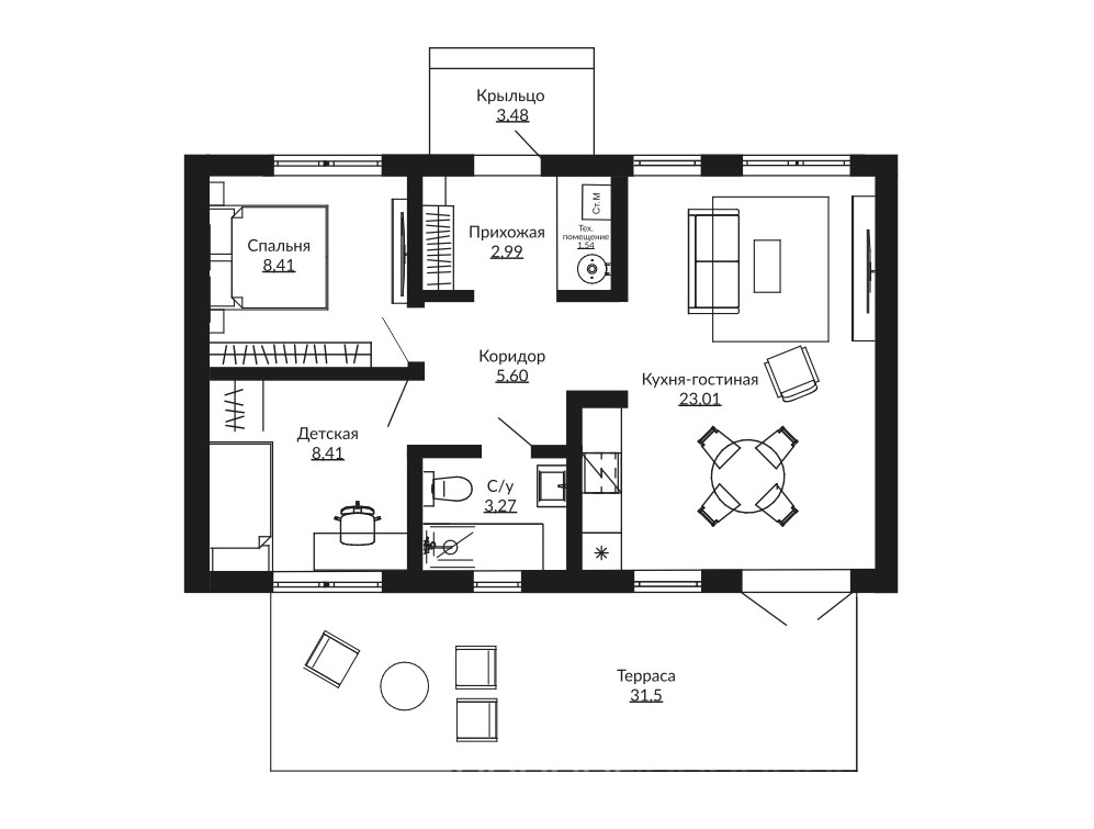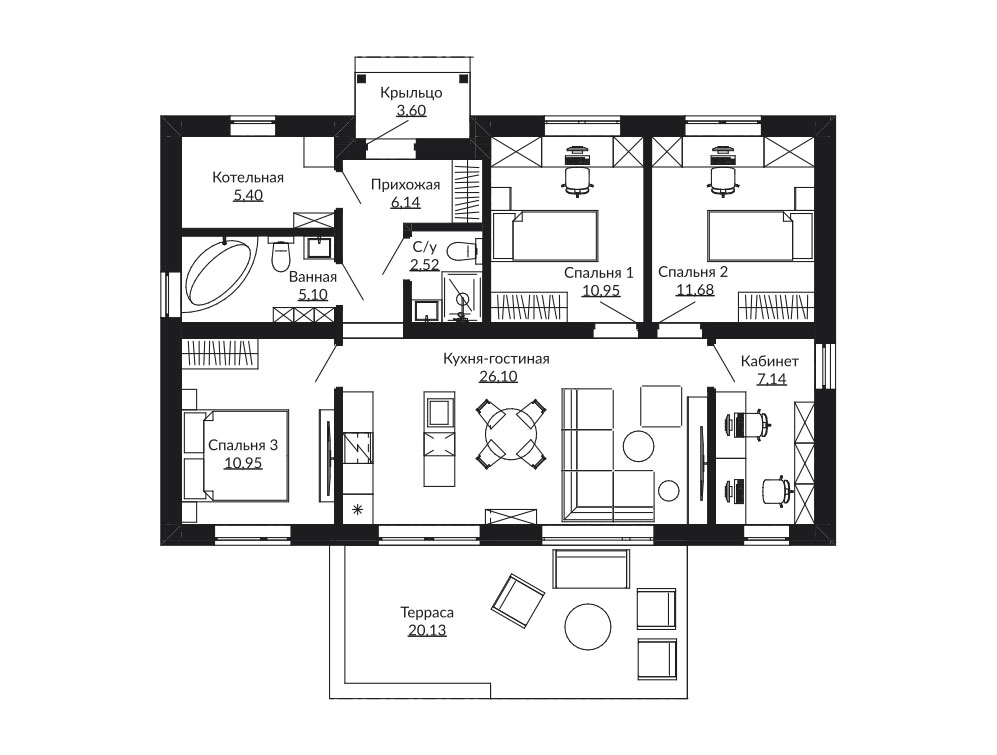 Мы адаптируем планировку под используемые нами материалы, толщину стен, учитываем несущие стены, опирание кровли, располагаем дом по сторонам света. Делаем расстановку мебели: шкафов, кухни, котельной в реальных размерах, если мы минуя планировку начинаем делать эскизный проект дома, то это занимает в разы больше времени, а планировка экономит ваше время.